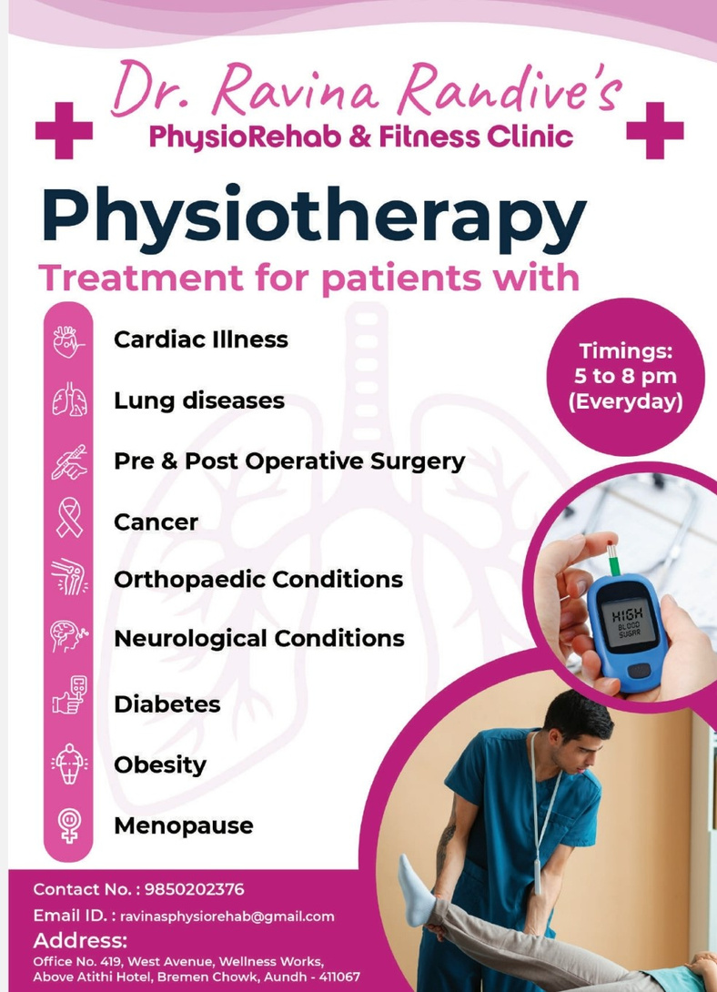 Dr. Ravina Randive is committed to providing high-quality and holistic treatment to patients of all ages. She believes in a personalized approach and always makes sure her clients understand and are comfortable with their treatment. Dr. Randive specializes in Cardiovascular and Respiratory Physiotherapy and is a certified Aerobic and Pilates trainer as well.